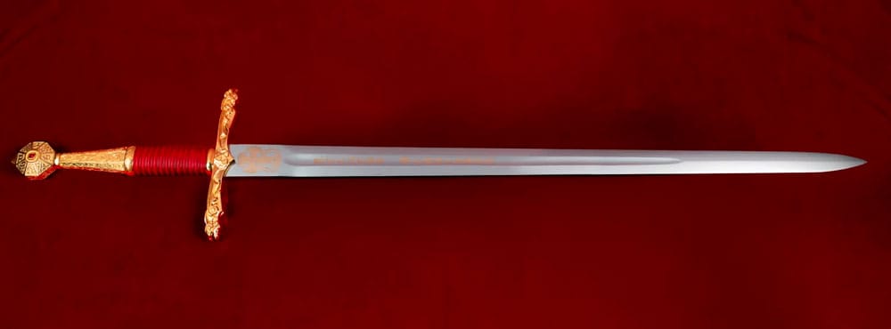 Cette épée nommée Exkalibur, d'une valeur estimée à 250 000 euros, a été réalisée spécialement pour cette chasse au trésor. Elle pèse 3,4 kilos, mesure 124 cm, est couverte d'or et possède un spinelle rouge rare de 6,23 carats. L'épée a été fabriquée par l'atelier Thibaud, situé au pied de la mythique citadelle de Carcassonne.